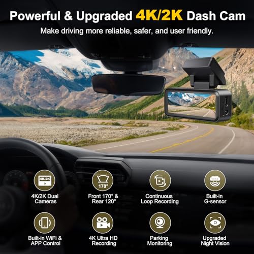 4K+2K Dual Recording Dash Cam: The dashcam has a front 4K UHD camera and a rear 2K camera that can clearly record details such as license plates and road signs at the same time, so you won’t miss important details. The dash cam front and rear is equipped with a 170-degree front wide angle and a 120-degree rear wide angle, effectively reducing blind spots. This dash camera for cars can help you preserve and provide important evidence when you have a collision and other unexpected situations.
