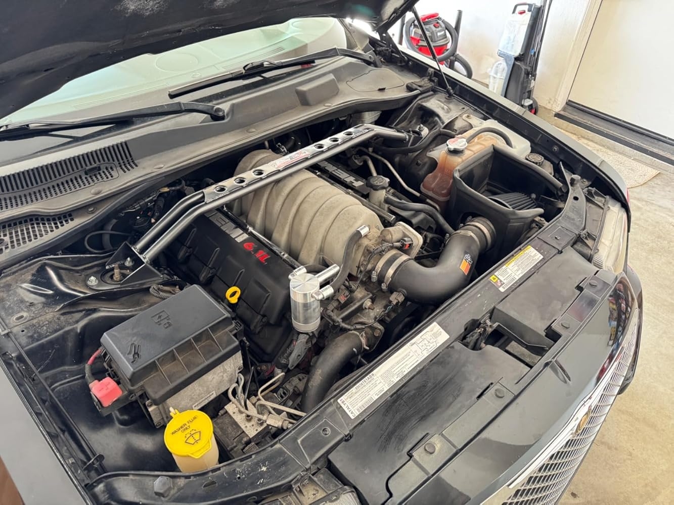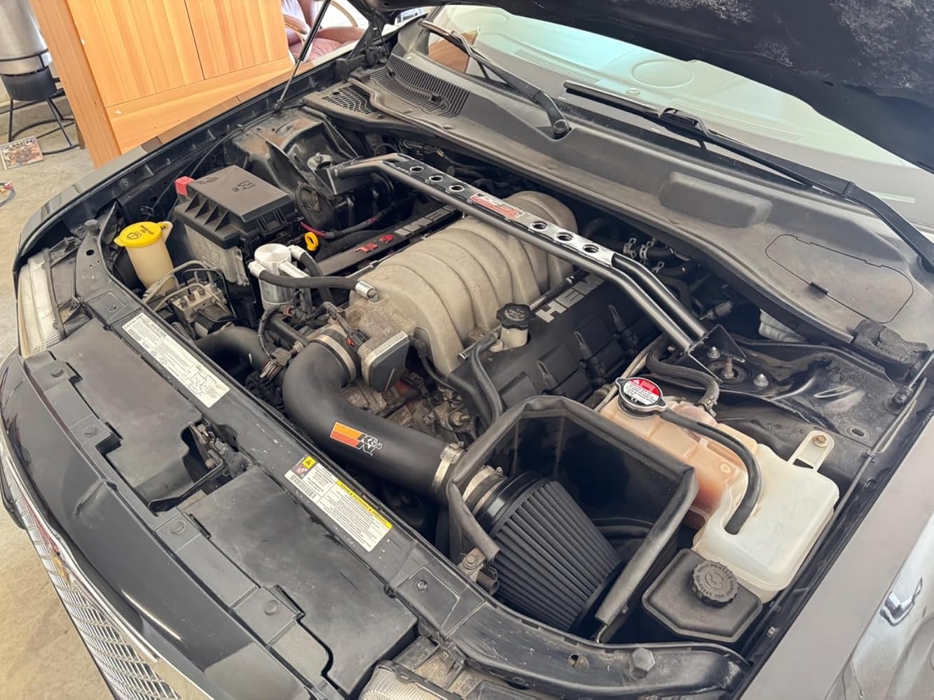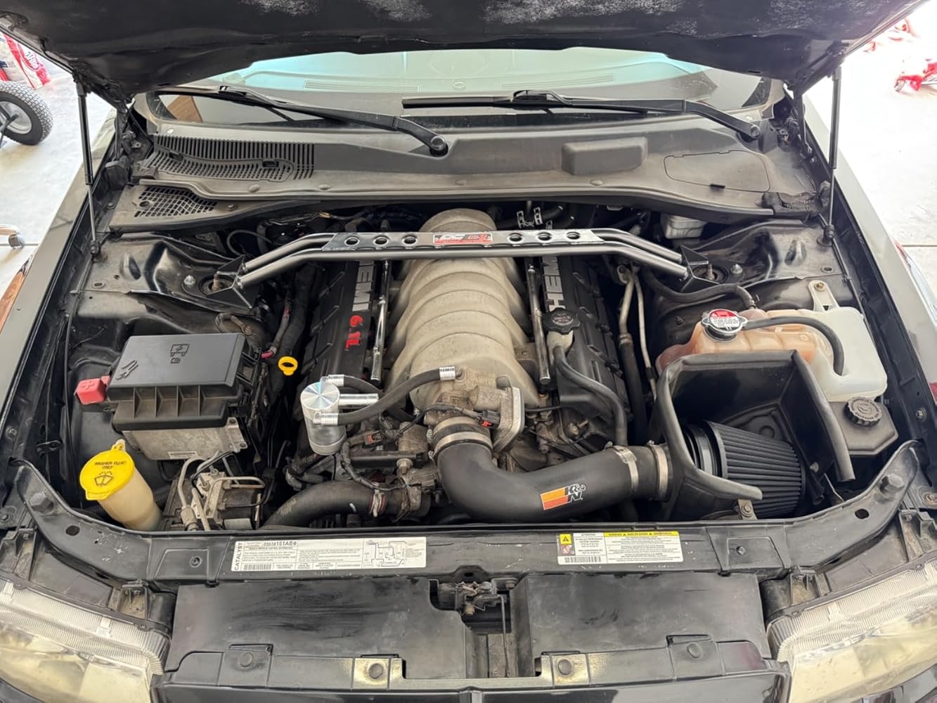 It fit perfectly even with the 6.1 intake, it even stiffened up the front and the steering did improve.