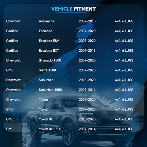 - Replacement for Cadillac 2007-2013 Escalade EXT (4×4; 6 LUGS)