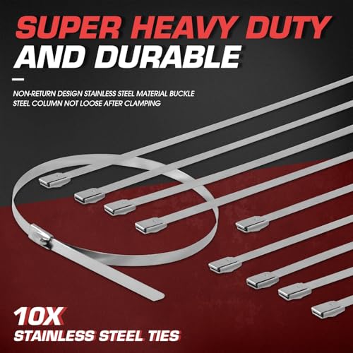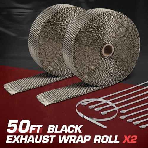 50Ft Exhaust Heat Wrap: Reduces underhood temperatures up to 50%, shielding vital components from heat damage; Includes 10 X Stainless Steel Ties