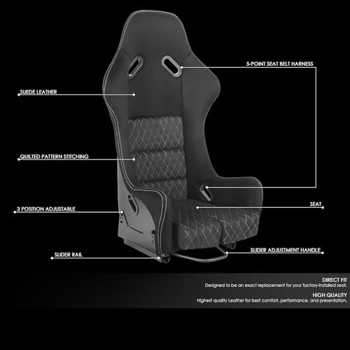 【Breathable and comfortable fabric】This bucket seat is made of premium suede fabric, which is both durable and soft and comfortable, ensuring you stay comfortable all through long drives or intense track driving.