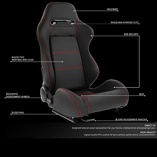 【Breathable and comfortable fabric】This bucket seat is made with premium PVC Leather that may be both durability and comfort, ensuring you stay comfortable right through long drives or intense track driving.