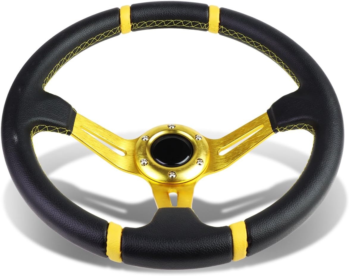 The DNA MOTORING 350mm Racing Steering Wheel + Horn Button (SW-ZTL-9043-GD-GD) is the ultimate upgrade for drivers who want style, substance, and speed in one package. Its deep dish layout, gold aluminum spokes, and vinyl leather grip deliver unmatched control and comfort — while turning your cockpit into a show-stopping focal point.
