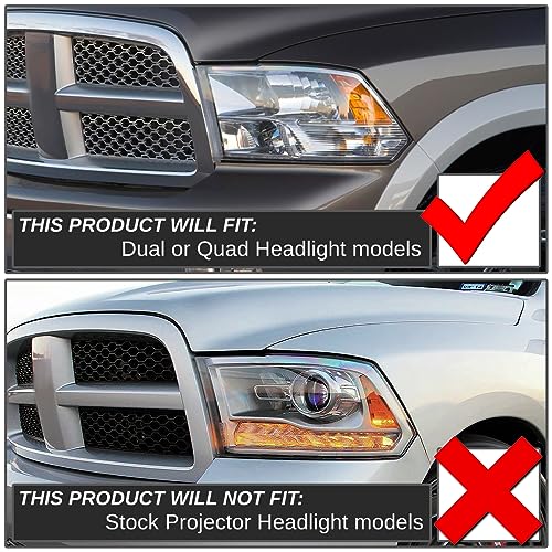 [*Fitment] – Compatible With 09-10 Ram 1500 / 2010 Ram 2500 / 2010 Ram 3500 / 10-18 Ram 1500 / 10-18 Ram 2500 / 10-18 Ram 3500 / 10-18 Ram 4500 / 10-18 Ram 5500 / For 2009, Fit New Body Style Models Only,Does NOT Fit Old Body Style Models / Will Not Fit to Models with Factory Projector LED Style Headlights