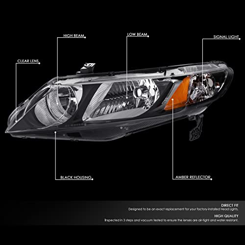 Specification: DNA MOTORING HL-OH-HC094D-BK-AM Pair of Black Housing Clear Lens Amber Reflector Headlights Compatible with 2006-2011 Civic Sedan