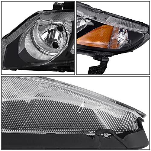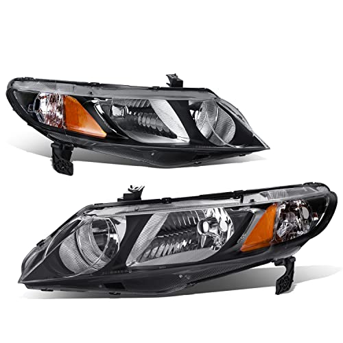 DNA MOTORING HL-OH-HC094D-BK-AM Pair of Black Housing Clear Lens Amber Reflector Headlights Compatible with 2006-2011 Civic Sedan