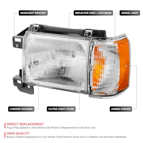 Specification: DNA MOTORING Left Headlamp Headlight Assembly Compatible With Ford Bronco F150 F250 F350 1987-1991, HL-OH-F15087-OEM-L