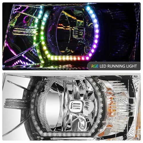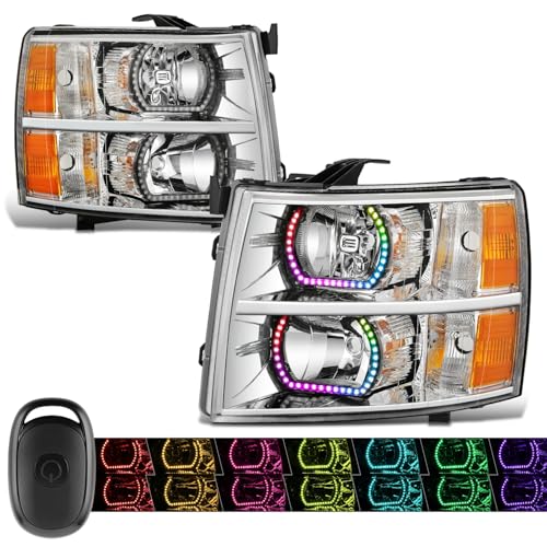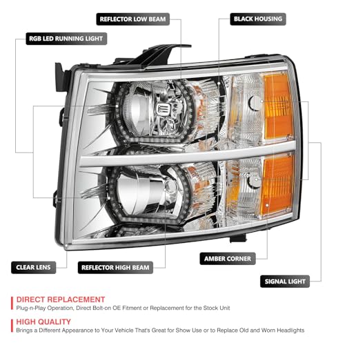 Specification: DNA MOTORING Pair of Headlights Compatible with 2007-2013 Chevy Silverado 1500, 2500 3500 & HD, Start Up Sequence RGB LED DRL, Chrome/Amber, HL-RGB-CSIL07-CH-AM