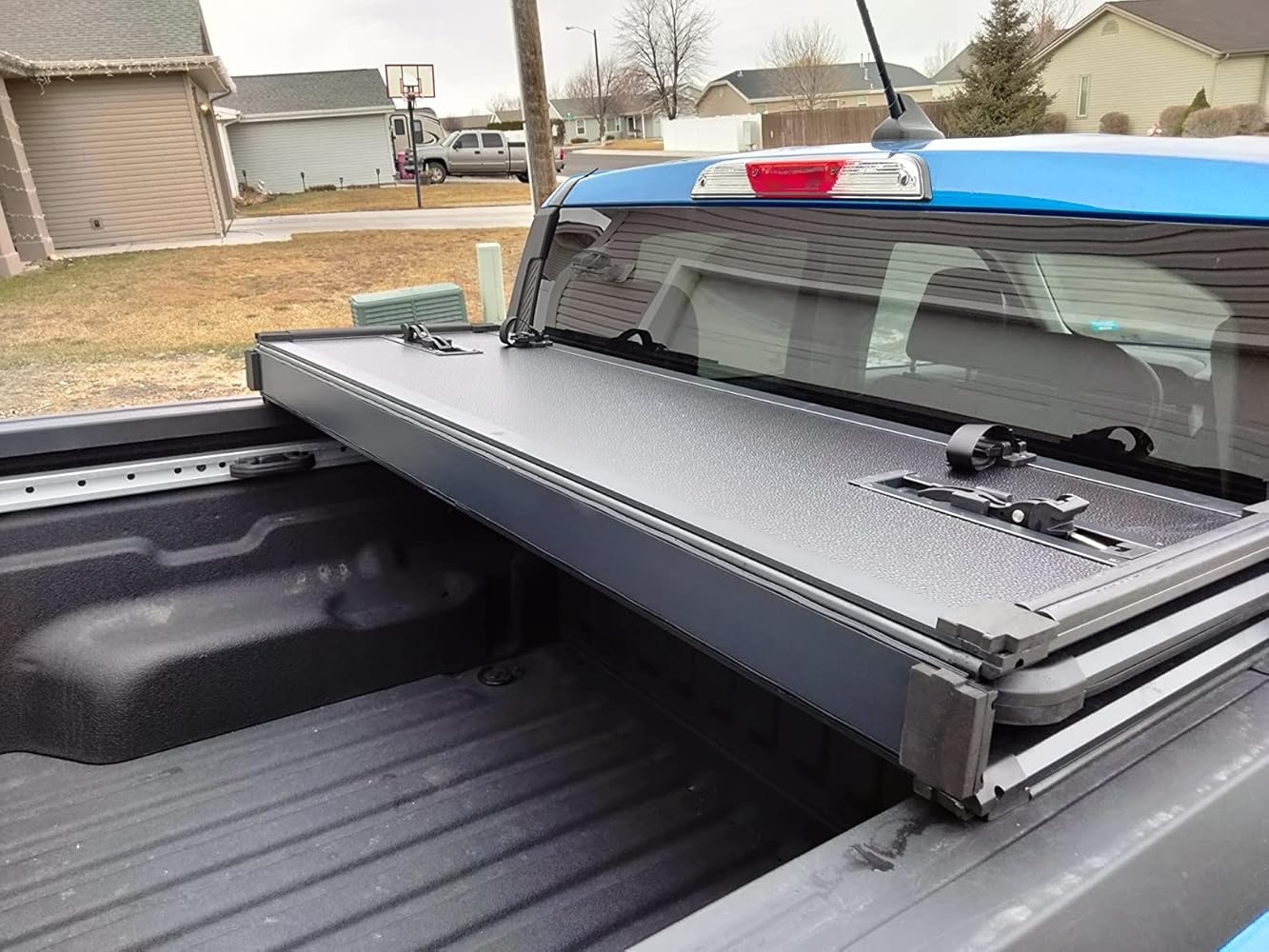 Our tonneau cover folds easily to give you quick access to any item. Whether it’s tools, groceries or camping equipment, a durable truck tonneau cover provides all-weather protection and is a must-have for outdoor truck gear in all weather conditions.