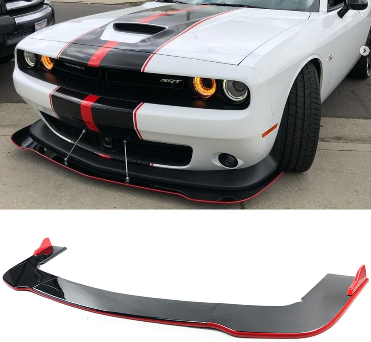 This front lip isn’t just an accessory — it’s a statement. Whether you’re cruising Main Street or lining up for a weekend track day, the black-and-red splitter gives your Challenger that wide, planted, ready-to-launch look that turns heads and intimidates taillights.