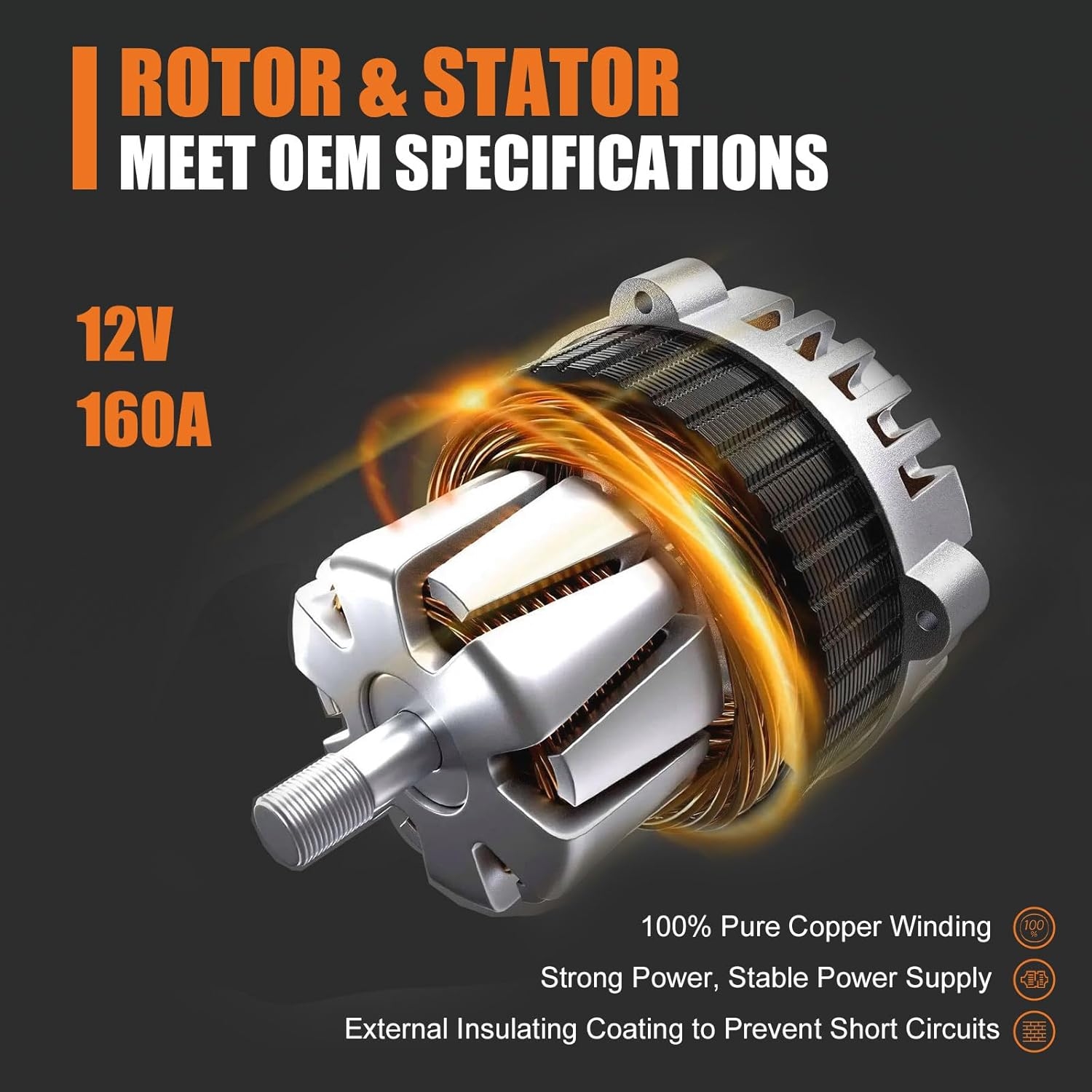 This 160-amp alternator provides: