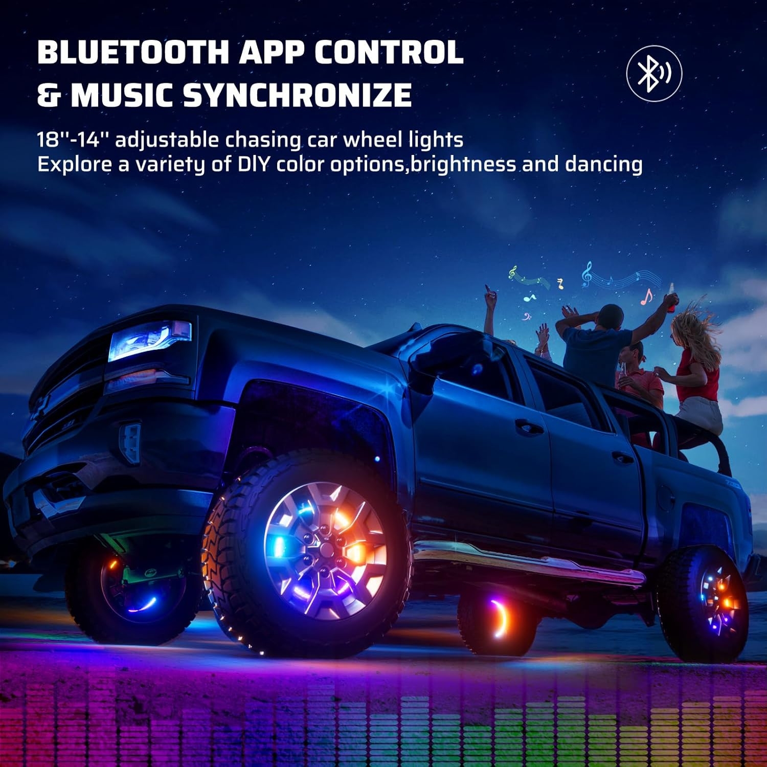 Built-in mic picks up music and turns your wheels into a rolling sound-reactive light show.