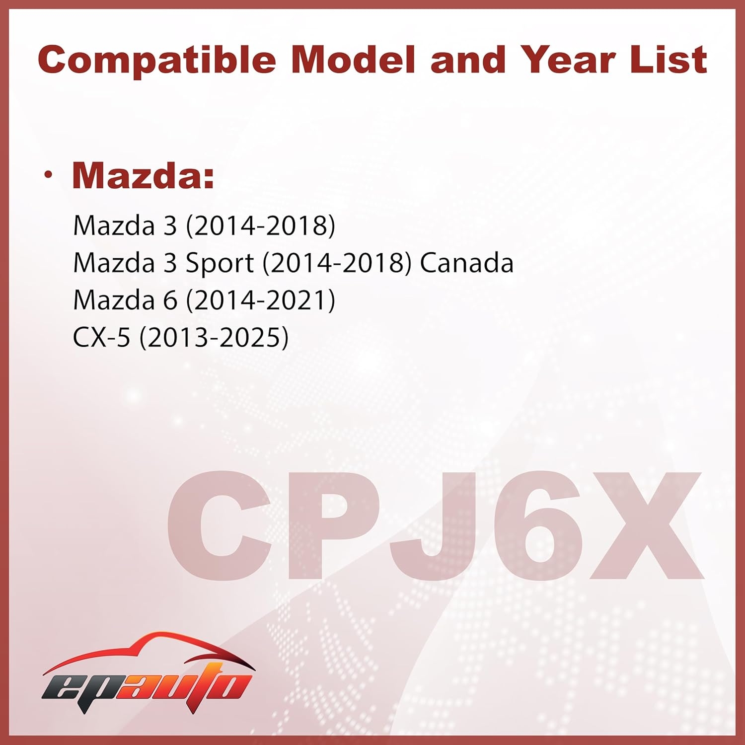 This EPAuto CPJ6X / KD45-61-J6X cabin air filter fits the following Mazda models: