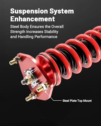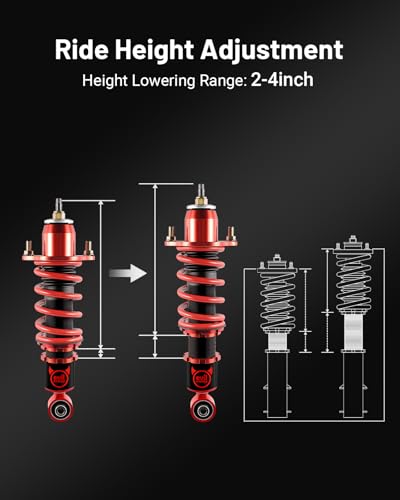 Specification: EVIL ENERGY Coilovers Compatible for Honda Civic DX/EX/GX/HX/LX/Si 2000-2006, Height Adjustable Lowering Kit, Twin-Tube Coilovers Suspension Kit for Comfortable Ride, Red