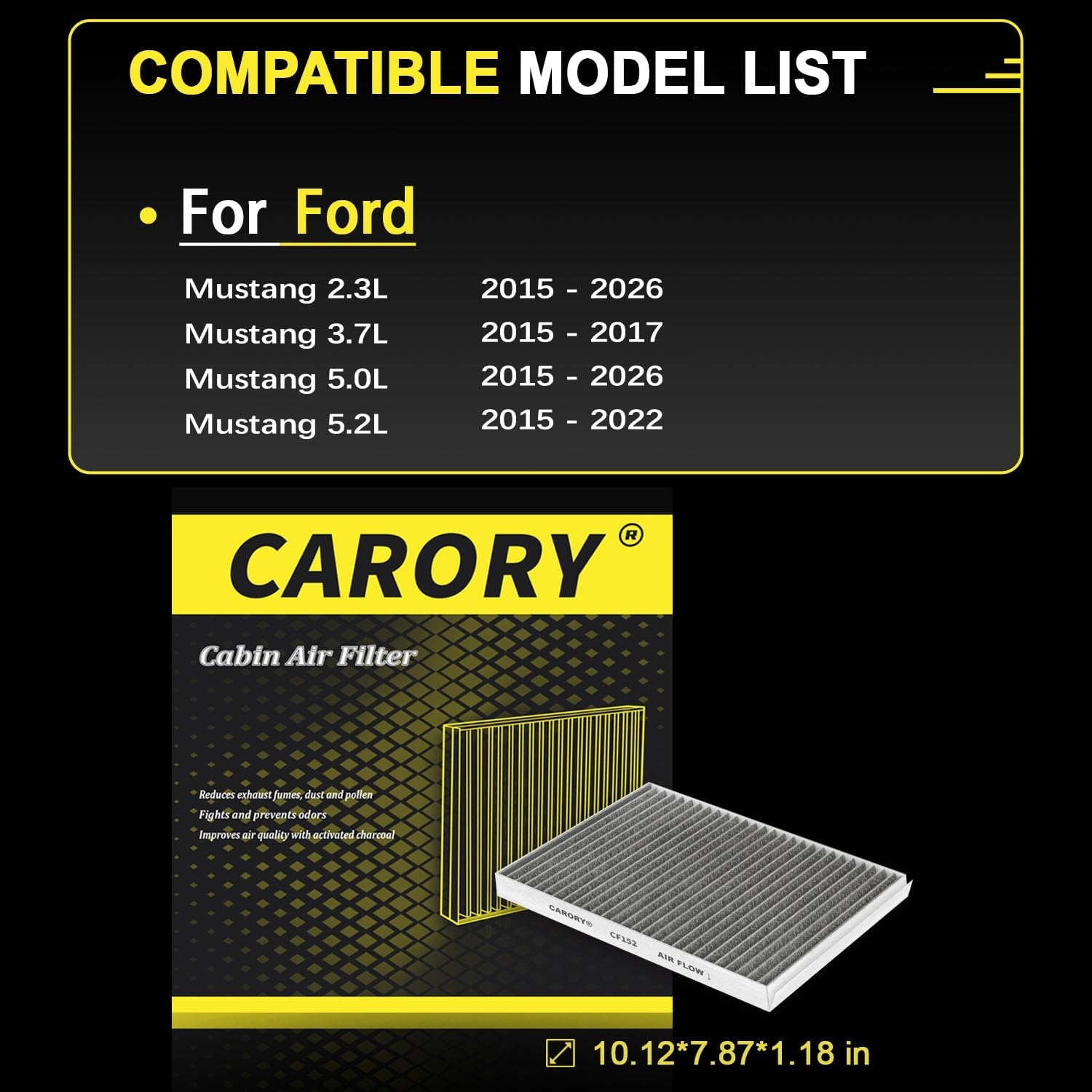 This cabin air filter fit my 2016 Mustang 5.0 perfectly. It appears well made, and the price was definitely better than what you’d pay at a dealership or parts store.If you’re looking for a simple, affordable replacement that gets the job done, this is a great option.