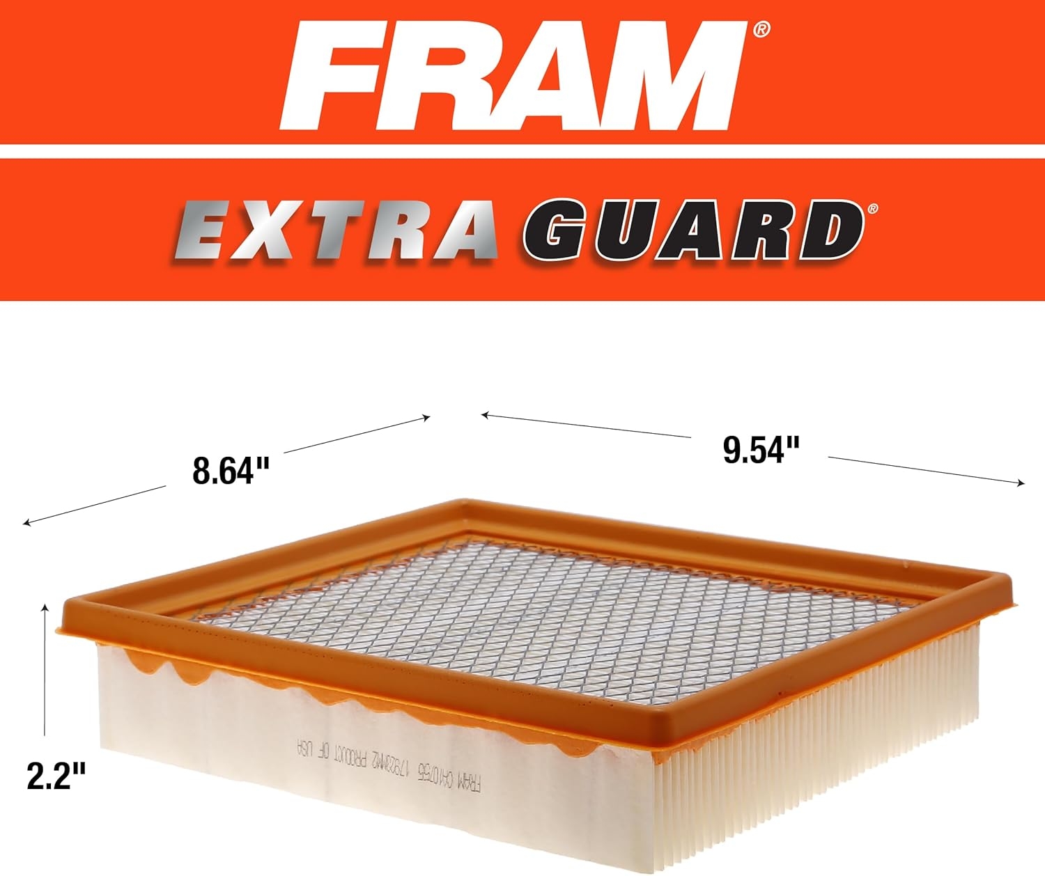 FRAM Extra Guard Air Filters are your first line of defense avoiding damaging road dust and dirt particles from entering your engine. Extra Guard Air Filters are engineered with an advanced filter media that lets through 2X less dirt than average leading standard retail brands AND protects your vehicle’s engine up to 12 months or 12,000 miles. Replacing a dirty air filter with a new FRAM Extra Guard Air Filter can help increase horsepower, acceleration and overall engine performance. Get better protection with ease and install a new FRAM Extra Guard Air Filter today. Compatibility Models: 2011-2022 DODGE DURANGO V6 3.6L, 2011-2021 DODGE DURANGO V8 5.7L, 2018-2022 DODGE DURANGO V8 6.4L, 2011-2021 JEEP GRAND CHEROKEE V6 3.6L, 2011-2021 JEEP GRAND CHEROKEE V8 5.7L, 2012-2021 JEEP GRAND CHEROKEE V8 6.4L, 2022 JEEP GRAND CHEROKEE WK V6 3.6L, 2013-2018 LEXUS ES350 V6 3.5L, 2015-2017 LEXUS NX200T L4 2.0L, 2022 LEXUS NX250 L4 2.5L, 2018-2021 LEXUS NX300 L4 2.0L, 2010-2022 LEXUS RX350 V6 3.5L, 2018-2022 LEXUS RX350L V6 3.5L, 2013-2018 TOYOTA AVALON V6 3.5L, 2012-2017 TOYOTA CAMRY V6 3.5L, 2014-2019 TOYOTA HIGHLANDER L4 2.7L, 2014-2019 TOYOTA HIGHLANDER V6 3.5L, 2011-2013 TOYOTA SIENNA L4 2.7L, 2011-2020 TOYOTA SIENNA V6 3.5L.