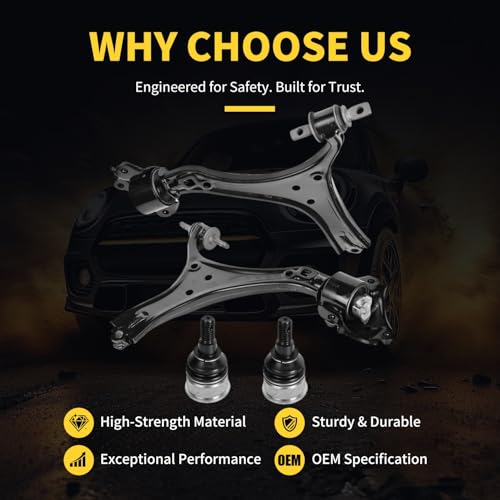[Kit Includes]1x Front Lower Control Arm – Passenger Side – K642509, 1x Front Lower Control Arm – Driver Side – K642517, 2x Front Lower Ball Joint – K500315
