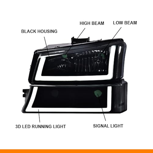 VEHICLE FITMENT: The upgrade headlights assemblies are compatible with 2003 2004 2005 2006 Chevy Silverado 1500/1500 HD/2500 HD/3500.2003-2004 Chevy Silverado 2500/2007 Chevy Silverado 1500 Classic /1500 HD Classic /2500 HD Classic /3500 Classic Body Pickup Only.Also, Fit 2003 2004 2005 2006 Chevy Avalanche (Without Body Cladding – Plastic Sides Cover). Bulbs don’t seem to be included. OEM part number/OEM number: