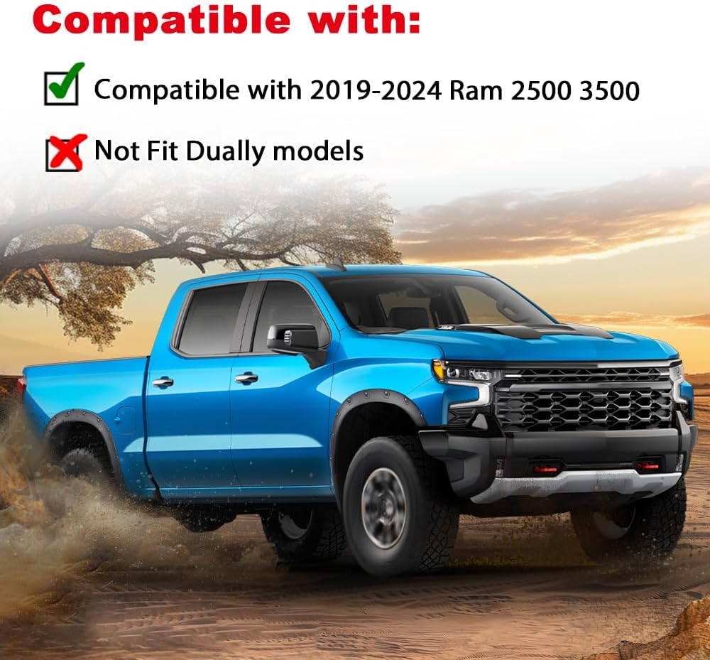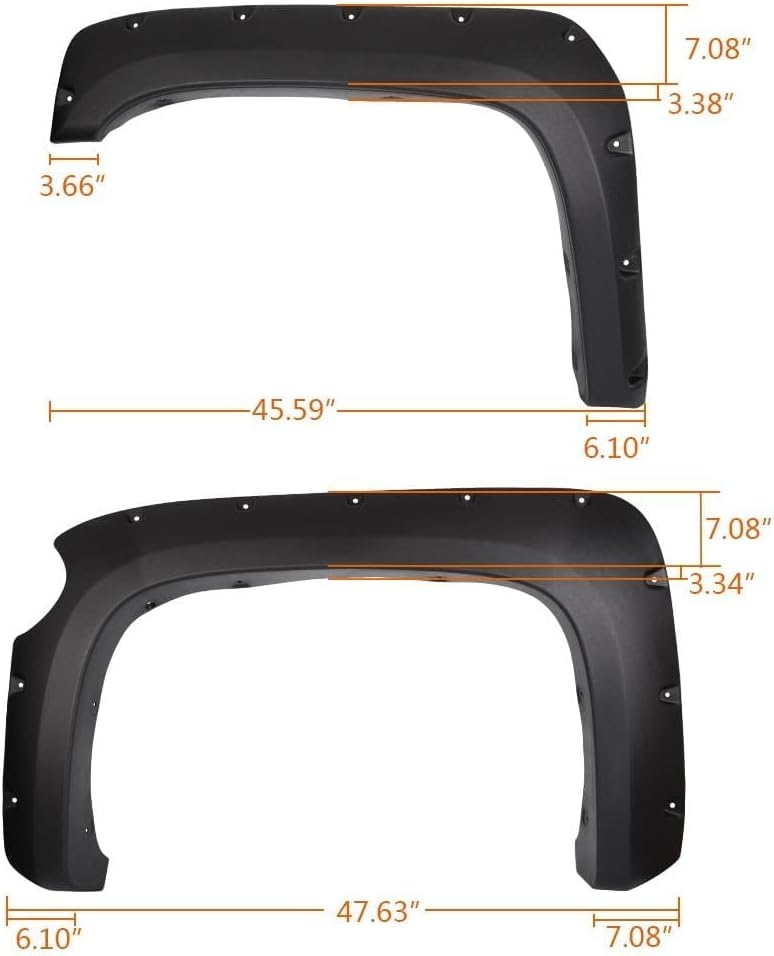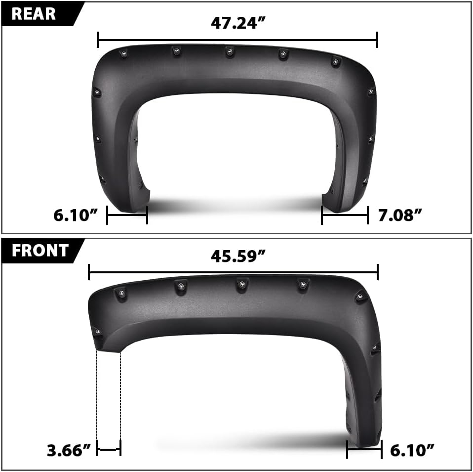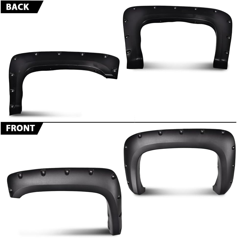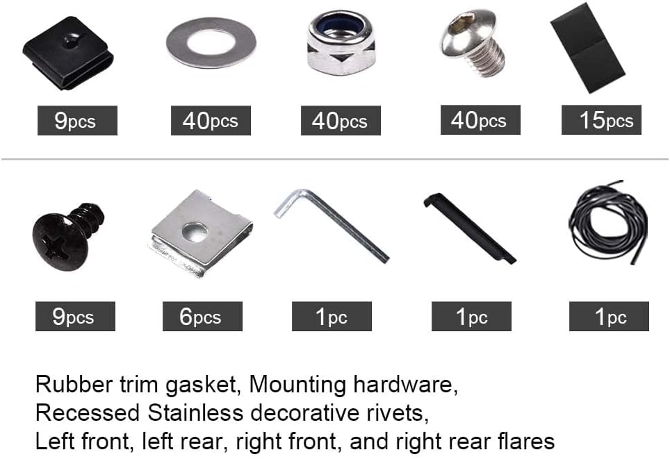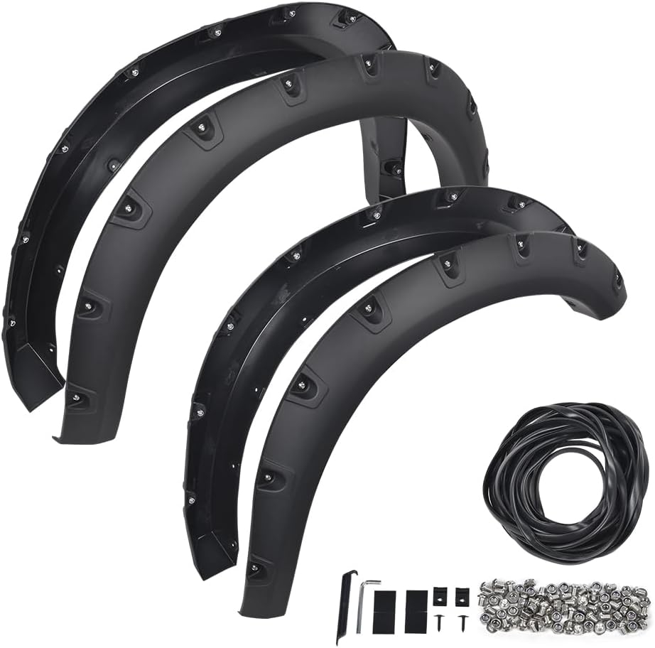 - PACKAGE INCLUDING: 4PCS Fender flares; Comes with bolts, nuts and all necessary mounting hardware for installation.