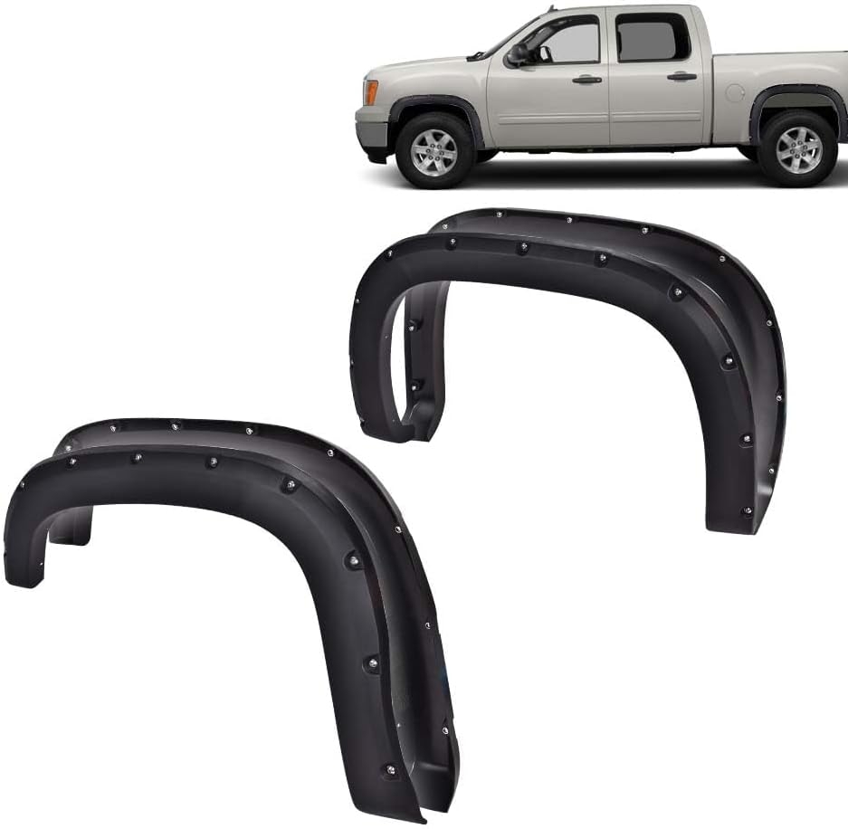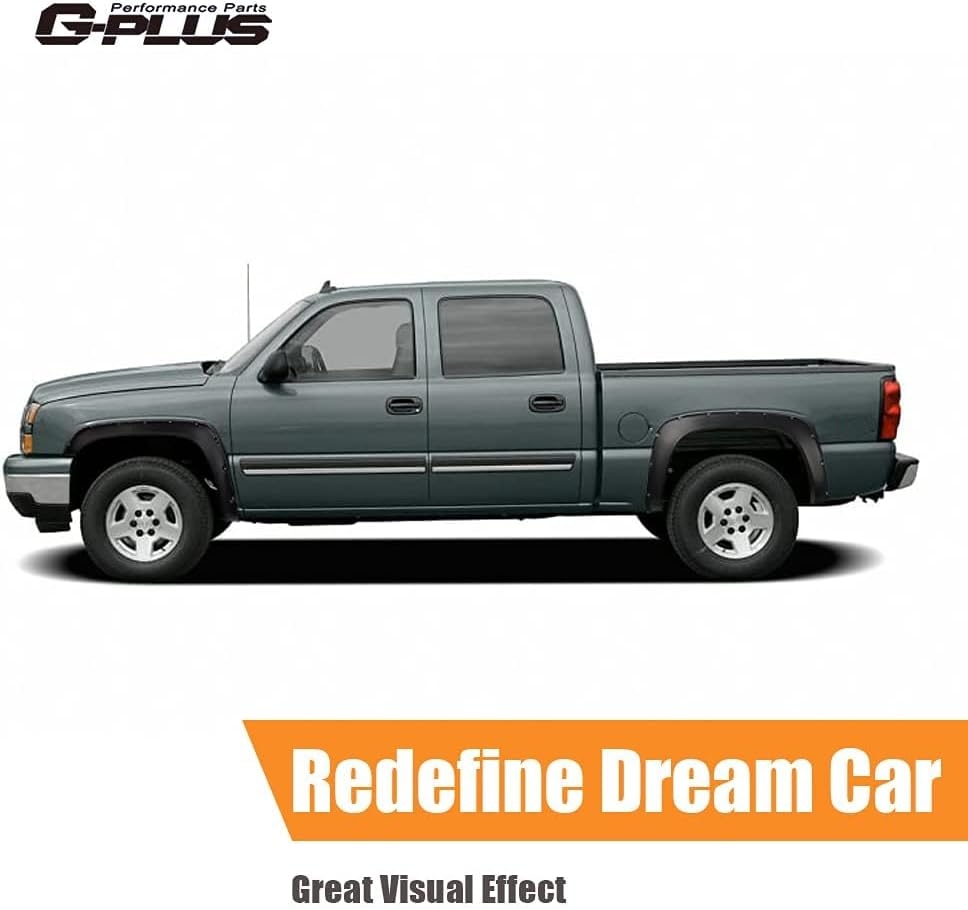 G-PLUS Pocket Riveted Fender Flares for 1999–2006 Silverado/Sierra (Incl. 2007 Classic) — Smooth Bolt-On Wheel Protector Trim