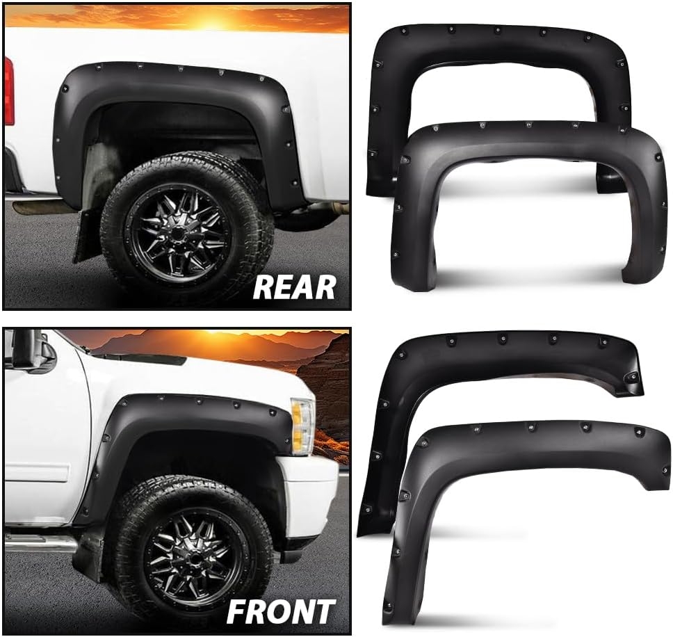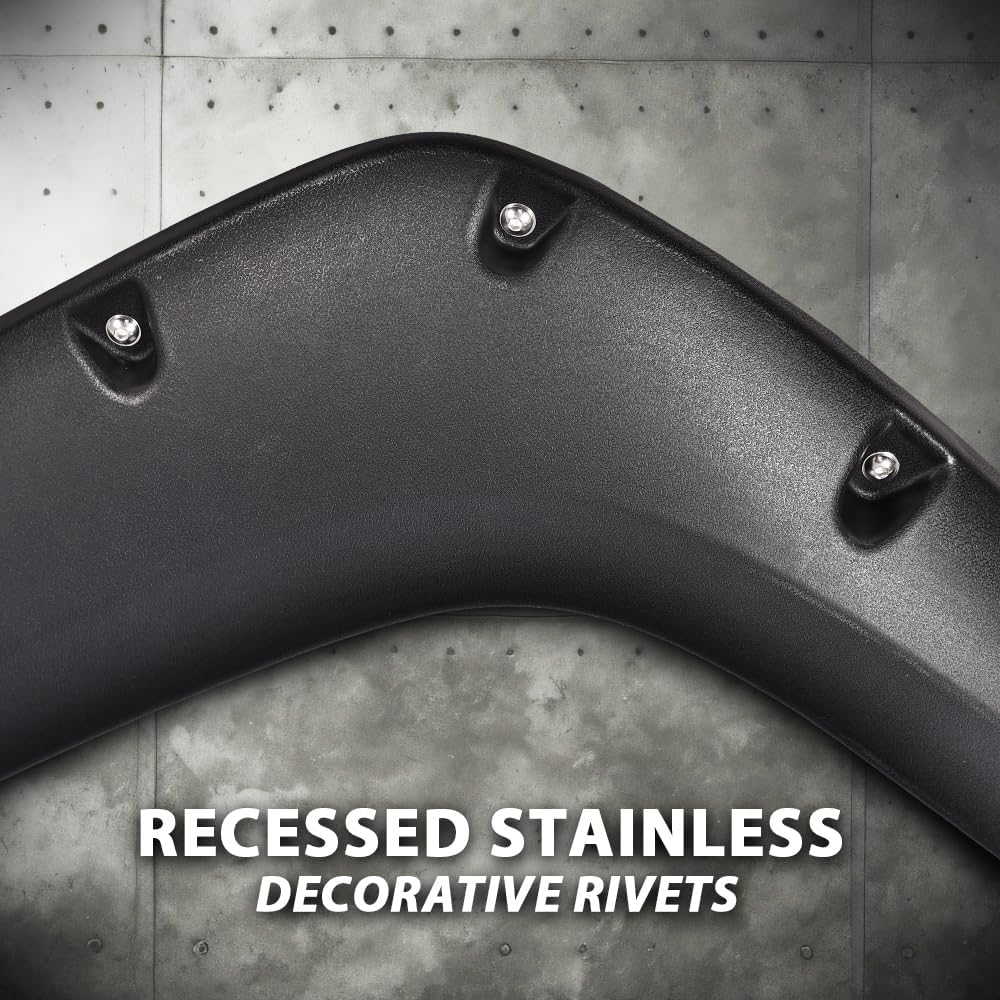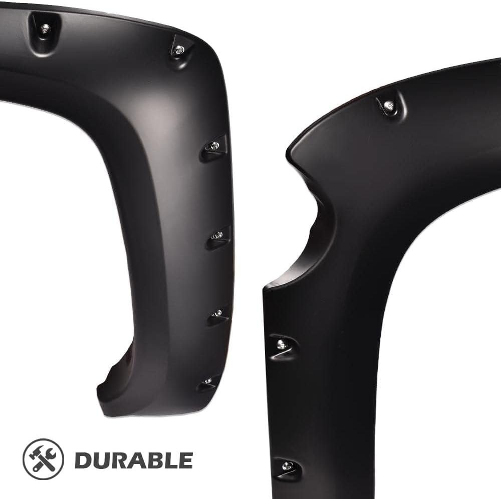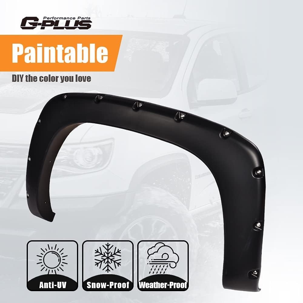 - OFF-ROAD STYLE: Grants 100% UV-Resistant smooth matte; Give your vehicle the appearance of an upmarket trim level with Fender Flares,Completely Defends Vehicle from Mud Scratches; DIY re-paintable exterior to fit your vehicle color.