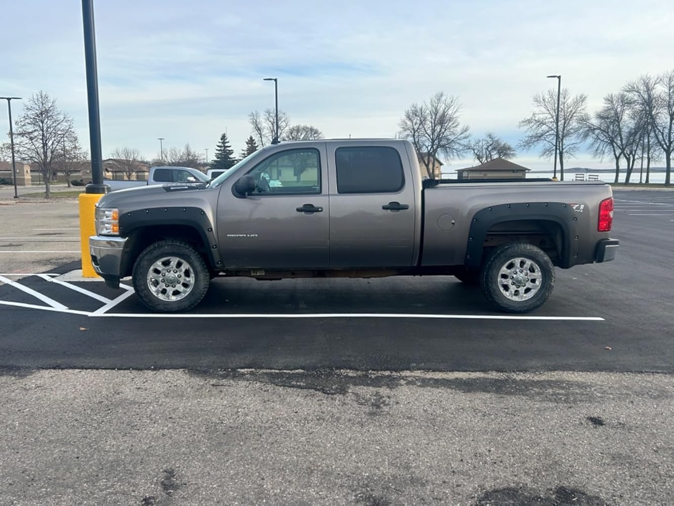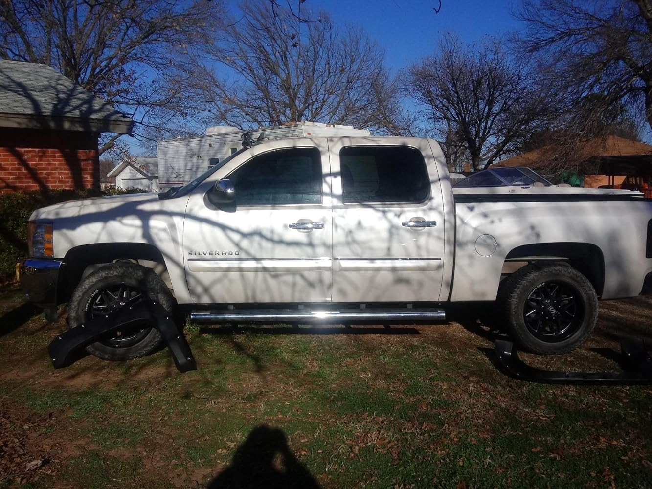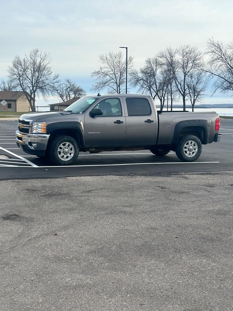 I got this for my husband for Christmas I know nothing about fender flares I ordered this the product is amazing looks great but they have two sizes this one is for a long bed and he has a short bed I messed up you can see in the picture it covers the gas lid the customer service has been working with me and they’ve been awesome we’ll update again after we get the right one his truck is a 2012 Chevy Silverado I measured the bed it’s six foot but if you measure all the way to the bumper it’s six and a half foot I thought this one would work I even put in the information to see if it would fit and it said yes so if you have a similar truck just know you have to buy there are other kit that has the cut out for the gas cap