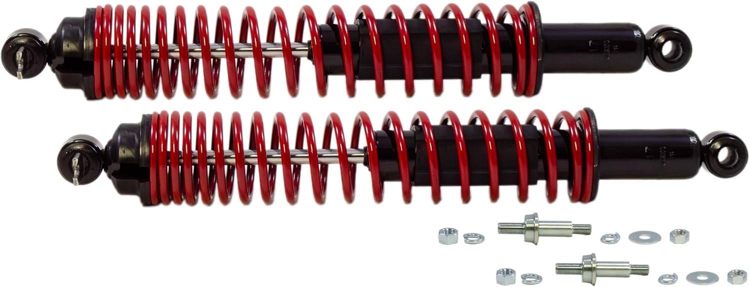 Fantastic for a 1987 Chevrolet Astro Van, in my case a RWD camper. It’s all but impossible to find load-adjusting shocks for a front axle, much less tweakable ones. I’ve been “Astro” my entire adult life and with added cowl weight or engine compartment weight in these are a life saver! Quiet, improved handling, stability, ride height, traction, easy to install if you lift the front high enough to get the shock through the control arm slot from the bottom. These fit inside the coil spring very well and add life to motor mounts. Braking is even better in my case. My only recommendation is Grade 8’s or 10’s over the supplied hardware. Also, since I use them in a modified application, I make a couple of slight modifications as photographed. Note: Although shock length and diameter is the same as OEM, load carrier shocks are all but impossible to compress by hand after the hand-tight top nut is installed. Rather than compressing the shock bottom with a jack and having zero clearance for the bottom eye bolts, it’s easier to start with two long bolts to snug it up. Then, remove one at a time and replace with your short bolts. In conclusion, these shocks are FANTASTIC, especially considering the price and performance!