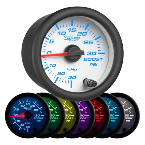 GlowShift White 7 Color Series 30 PSI Mechanical Boost/Vacuum Gauge is Designed to Monitor Boost Pressure & Vacuum Compression Levels of Your Car’s Turbo or Supercharged Engine