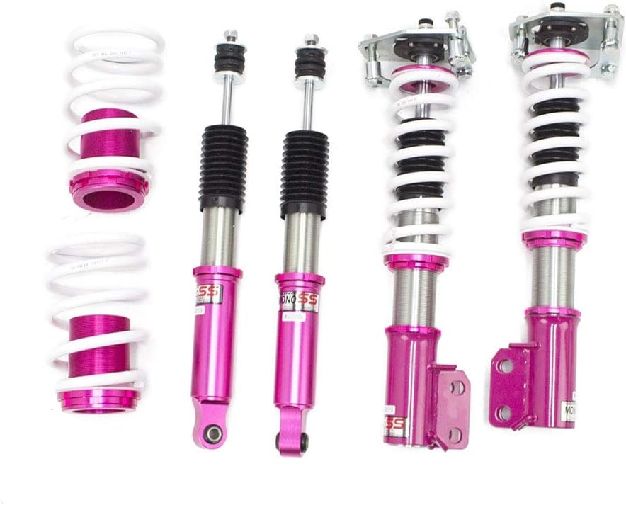 MonoSS coilovers let you lower the car without killing usable travel, which is why it actually drives better instead of just looking lower.