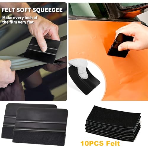 2PCS FELT EDGE SQUEEGEE FOR VINYL WITH EXTRA 10PCS SQUEEGEE FELT:Our felt edge squeegee for vinyl made of top quality fabric felt edges for longer life than regular squeegees. With this soft material,the edges of the felt will protect your vinyl without leaving any residue,also it may be widely used for numerous purpose ,such as remove the bubble from a car film, window tinting,wallpaper,and application fluid downright under the film,protecting glass,car paint, and film,window tint film application,wallpaper and so forth