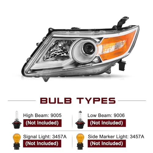💡【VEHICLE COMPATIBILITY】Headlights Assembly Fit 2011-2017 Honda Odyssey. Bulbs are NOT included. High beam bulb type: 9005; low beam bulb type: H11. OEM Part Number: 33100TK8A01,HO2503142,33150TK8A01,HO2502142.