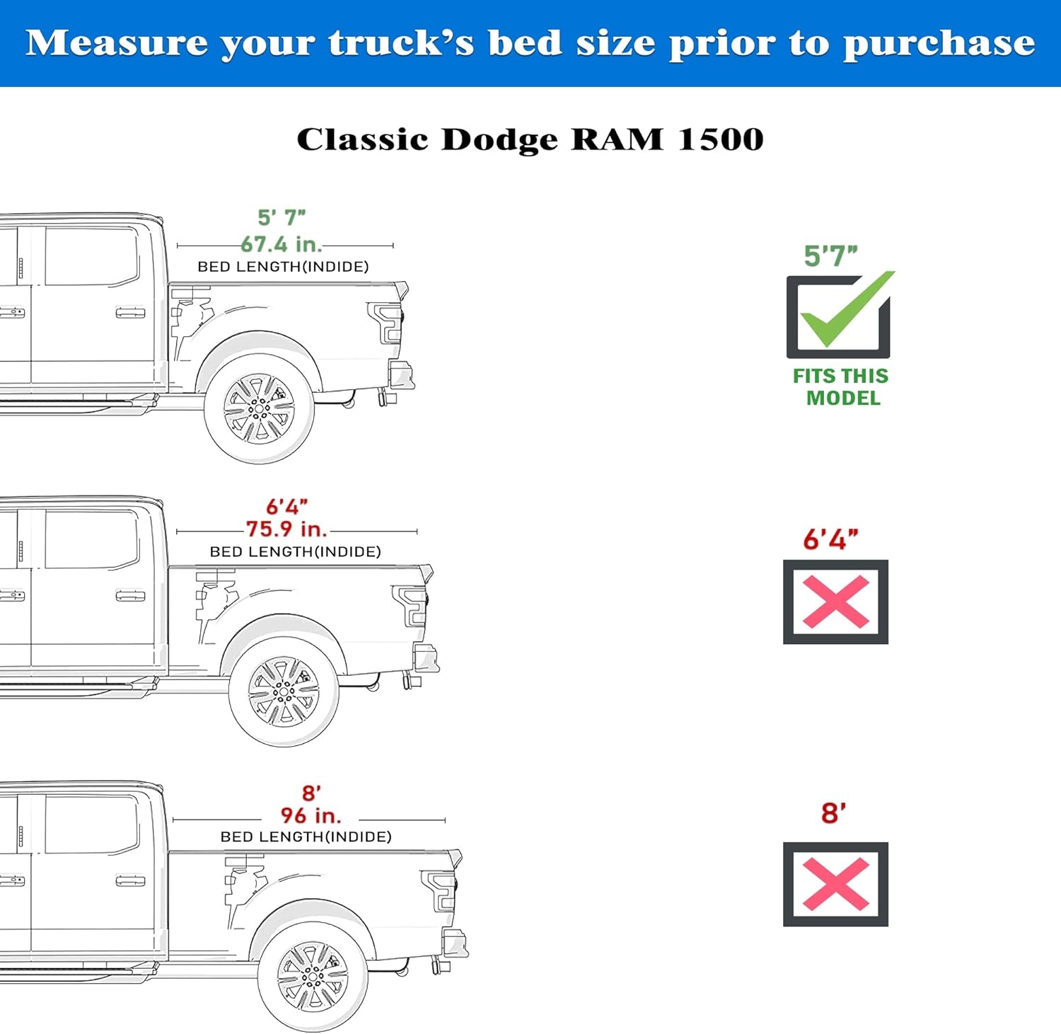 Fits my 2018 Ram 1500 with 6′-4″ bed nicely. Easy to install and easy to open up and fold when extra space is needed. Package was missing a part but seller was quick to replace. Very happy with purchase.