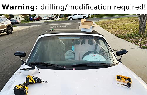 Installation Tip: Remove the original side mirrors, mount the metal base to either the side door, fender, or the original mirror location with the provided screws, then attach the side mirror; due to required drilling, professional installation is highly recommended