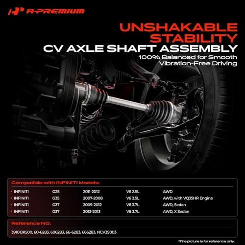 Specification: A-Premium CV Axle Shaft Assembly Compatible with Infiniti G25 2011-2012, G35 2007-2008, G37 2009-2013, V6 2.5L 3.5L 3.7L, AWD, Front Left Driver Side, Replace# 39101JK500