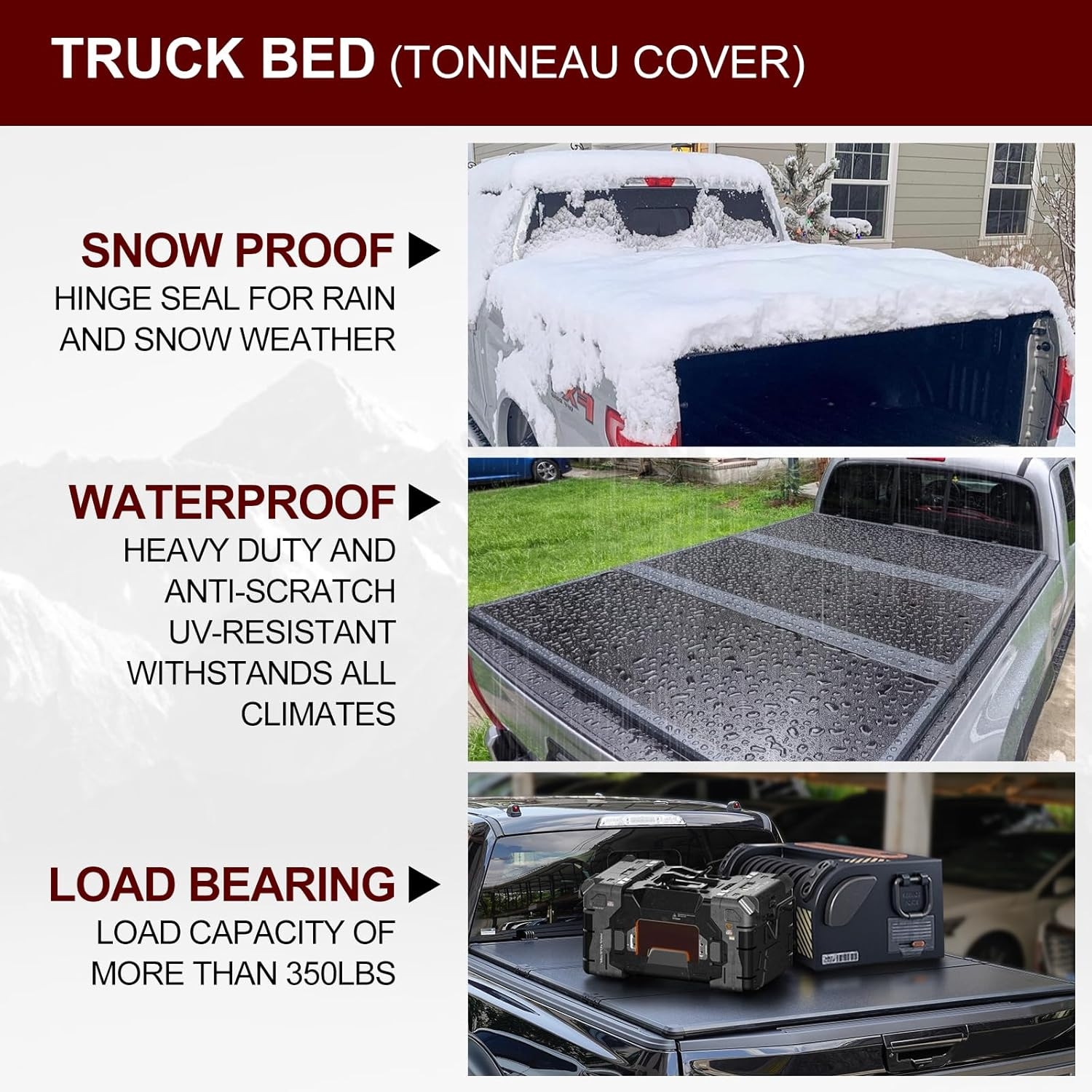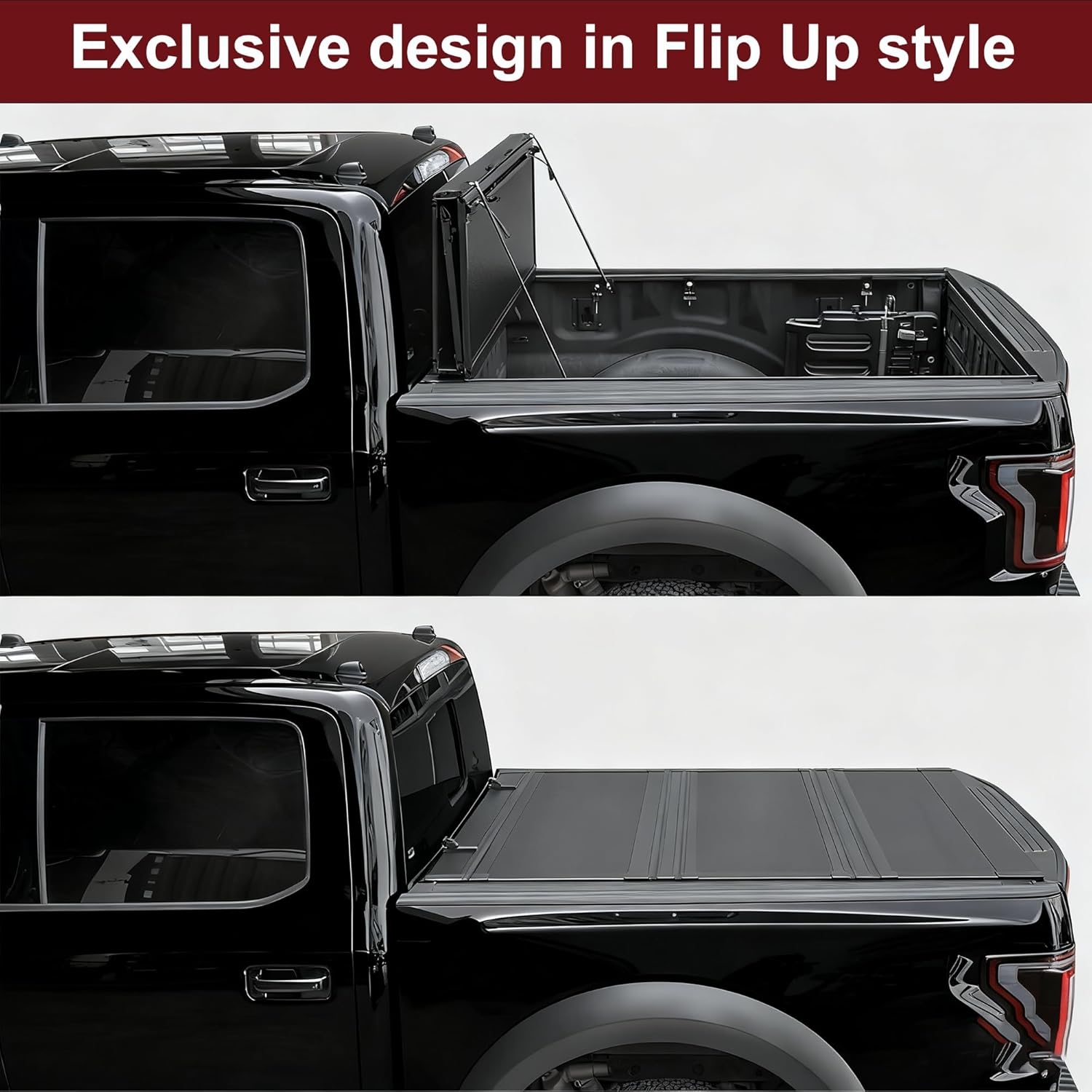 Opens upward for instant full-bed access. No folding panels across your windshield, no drama. -