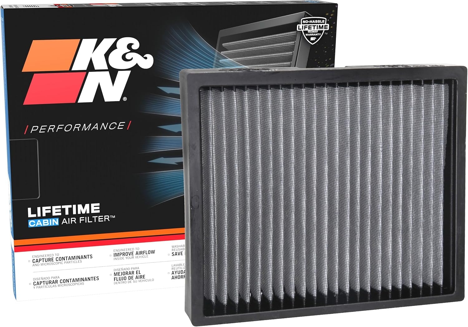 K&N’s line of washable replacement cabin air filters are designed to filter your incoming air using state-of-the-art filtration technology—protecting your vehicle’s occupants, interior, and HVAC system from impurities and unpleasant odors. Engineered to be washable, reusable, and durable, this cabin filter is designed to last for the entire lifespan of your vehicle!