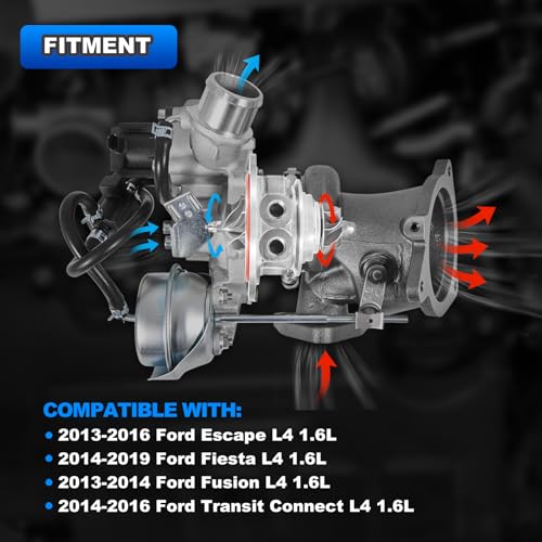 FITMENT: Turbo charger compatible with Ford: 2013-2016 Escape L4 1.6L | 2014-2019 Fiesta L4 1.6L | 2013-2014 Fusion L4 1.6L | 2014-2016 Transit Connect L4 1.6L. Please check fitment for your vehicle to confirm the compatibility before purchase