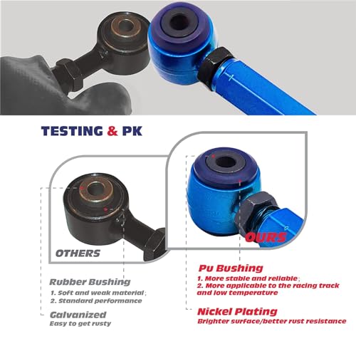 Replacement: Can directly replace OEM arms on vehicles with stock ride or on vehicles that have been modified for performance. Wider range of camber adjustment suitable for street or track tuning
