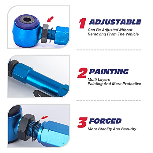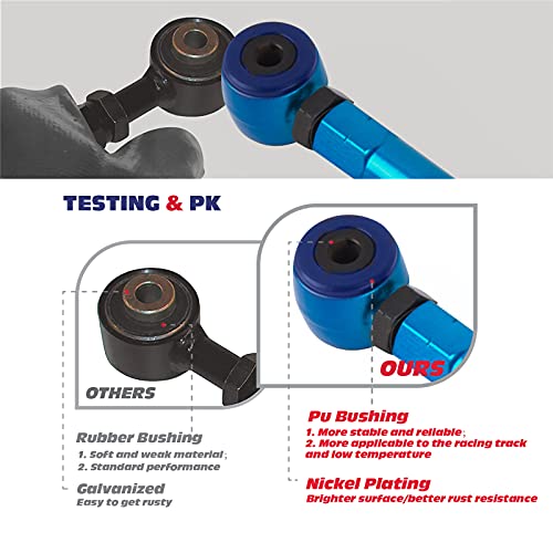 Adjustable:Rear Adjustable Control Arms – Camber: -2° to +4°(Degree), and can be adjusted according to personal preference without removing from the vehicle.