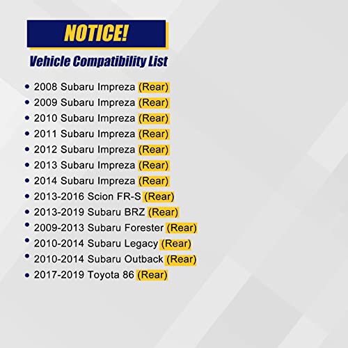 【Compatibility Vehicle】 512401 Wheel Bearing and Hub Assembly Replacement for 2008-2014 Subaru Impreza(Rear),2013-2016 Scion FR-S(Rear),2013-2019 Subaru BRZ(Rear),2009-2013 Subaru Forester(Rear),2010-2014 Subaru Legacy(Rear),2010-2014 Subaru Outback(Rear),2017-2019 for Toyota 86(Rear)
