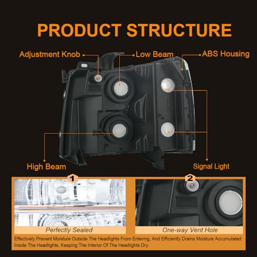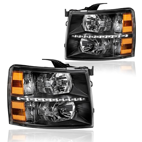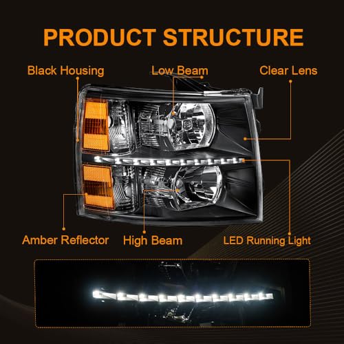 Specification: LED Headlight, Headlights Assembly Kit Compatible with 2007-2013 Chevy Silverado 1500/2007-2014 Silverado 2500 3500 or HD Headlamp Black Housing Amber Reflector