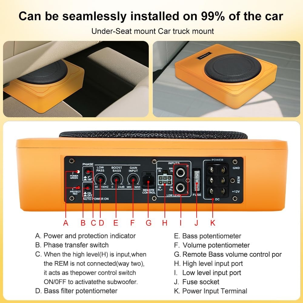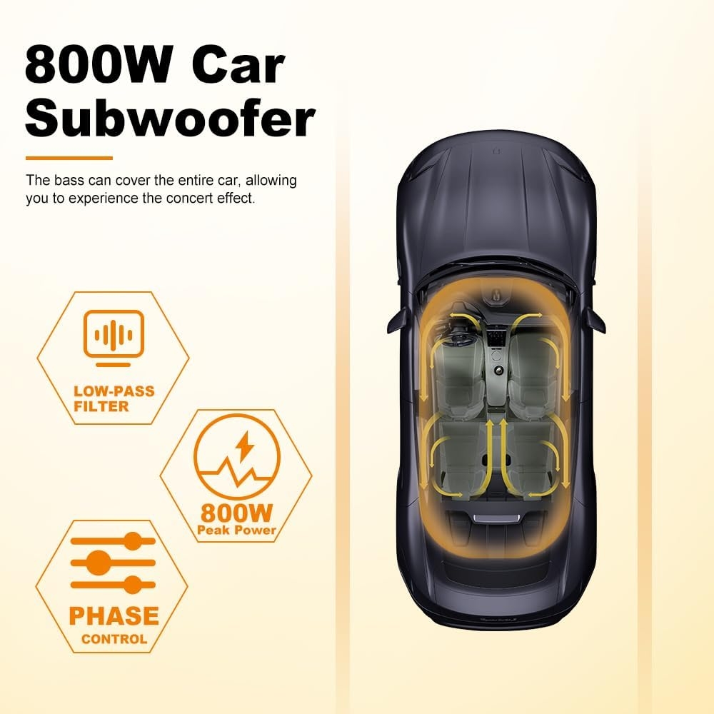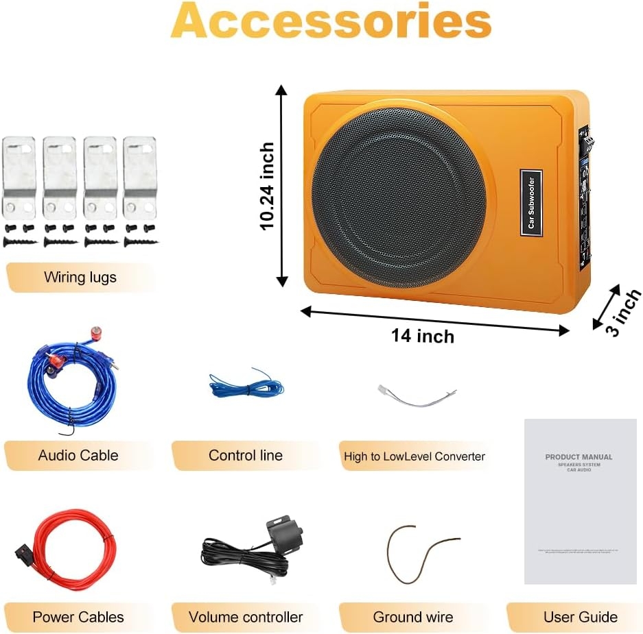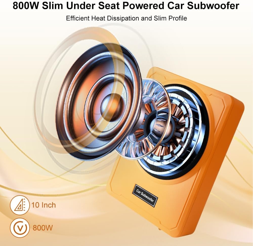 This 10-inch slim under-seat car subwoofer has been a fantastic upgrade for my Mercedes-Benz W123, which is a car with very limited space for audio components. The compact, under-seat design was the perfect solution for me, as it added much-needed bass to my audio system without sacrificing any trunk space.Functionality: This subwoofer is a powerful, all-in-one unit, with a built-in 800-watt amplifier that drives a 10-inch subwoofer. It adds a deep, rich bass that was completely missing from my classic car’s sound system. The included remote bass control is a great feature, allowing me to easily adjust the bass level from the driver’s seat. I also appreciate that it has both high and low-level inputs, so it could connect to my factory radio or a modern aftermarket stereo. The “football design” adds a unique aesthetic touch.Ease of Assembly: Installing it was straightforward, and the fact that it came with a complete wiring kit was a huge plus, as I didn’t have to source any additional parts. While it required running some wires under the carpet and connecting it to my stereo and battery, the process was manageable. The slim design allowed it to tuck neatly under the passenger seat, keeping it completely out of the way.Value for Money & Comparison: Compared to installing a traditional subwoofer box and a separate amplifier, this under-seat subwoofer offers excellent value and convenience. It provides a powerful, compact, all-in-one solution that delivers impressive bass without the bulk, making it a superior choice for any car owner who wants to enhance their audio experience while preserving interior and trunk space.