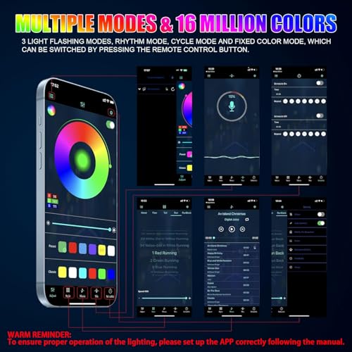 DIY & Music Mode: Unleash your creativity with 16 million colors and endless lighting effects through the Smart App’s DIY mode, transforming your car into a rolling masterpiece. Switch to Music Mode and watch as the built-in microphone brings your lights to life, syncing every color and pulse to the beat of your favorite songs—turning every drive into an electrifying light show that’s uniquely yours.