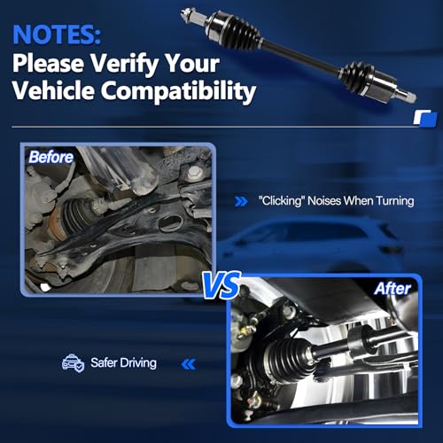【CV Joint OE Number&Kit Includes】:OE: NCV36121(Left Axle); NCV36122(Right axle); |Compressed Length: Left: 26 5/7″; Right: 22 3/4″. 2x Front Driving force and Passenger Side CV Axle Shaft.