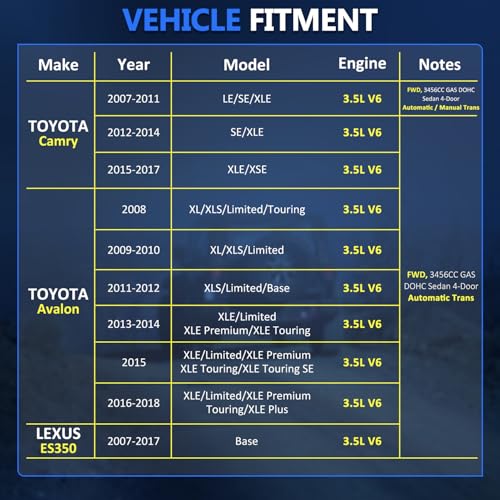 【Notice】: Please check the compatibility list at the listing page for more submodel details to ensure your exact model is included, should you cant ensure, welcome to contact us with the VIN or year/make/model/trim/engine of your car. Open your engine hood and check whether there’s a “V6” mark at the engine cover