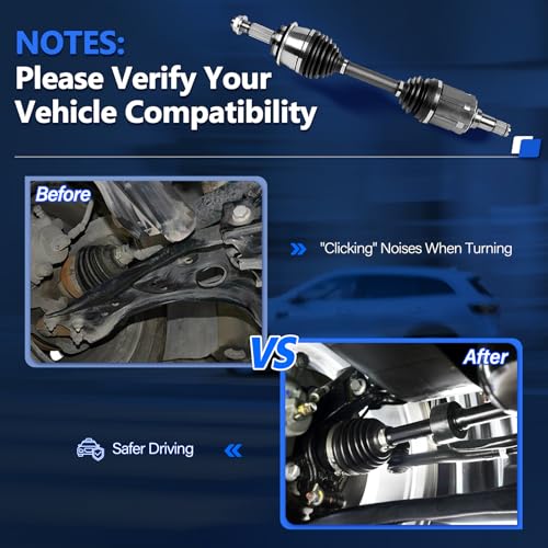 【CV Axle Front Compatible with Toyota Models】: The FWD left and right front CV axles joint replacement for 2007 2008 2009 2010 2011 2012 2013 2014 2015 2016 2017 Toyota Camry CV Axle V6 3.5L, 2010-2011 Camry L4 2.5L (Automatic Transmission simplest Aside from Japan Built), 2008-2018 Toyota Avalon(From 07/2007) CV Axle LE/XLE/SE/XSE 3.5L Auto. Trans V6