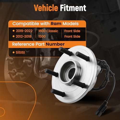 Specification: maXpeedingrods 515151 Front Wheel Bearing and Hub Assembly Fit for 2012-2018 Ram 1500, for 2019-2022 Ram 1500 Classic, 5 Lug Bolts, W/ABS
