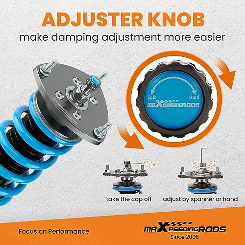Specification: maXpeedingrods Coilover for Honda CR-V 2002-2006, 24 Levels Damper Adjustable Coil-overs Suspension Kit Strut, Height Adjustable T6 Upgraded Lowering Kits Blue