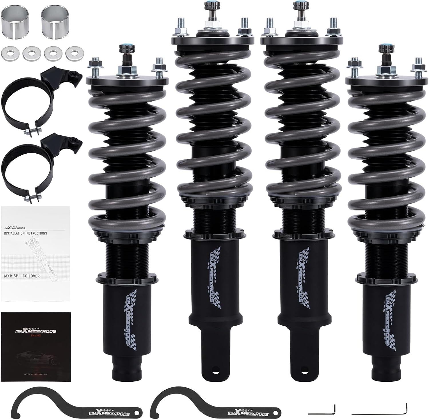 Specification: maXpeedingrods Racing Coilovers for Honda Civic 1988-2000, for Honda CR-X 1988-1991, for CR-X Delsol 93-97, for Acura Integra 1990-2001, 24 Levels Damping Adjustable Coilover, T7 Upgarded Lowering Kit