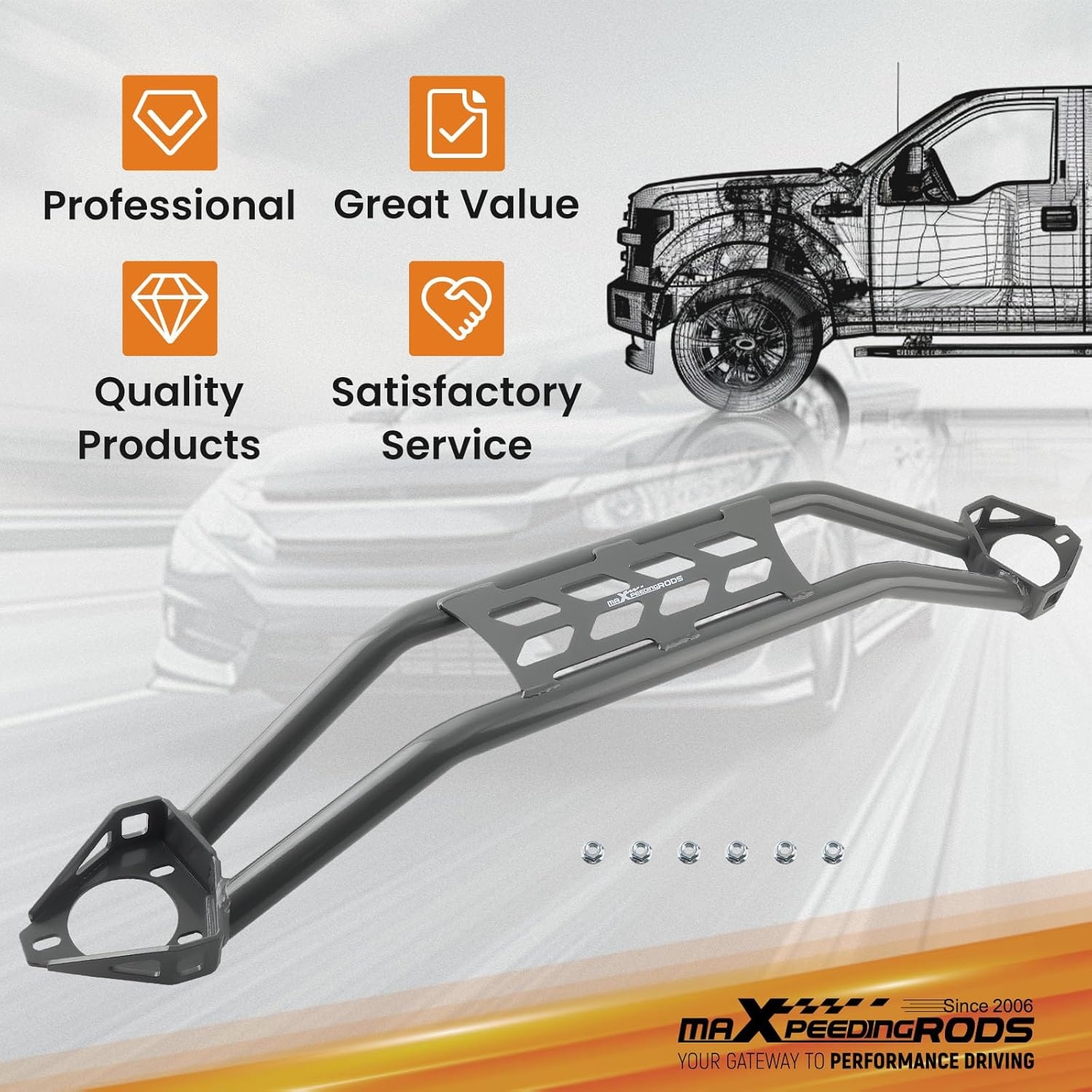 • Easy To Install: Made of high-strength steel with anti-rust coating, this strut tower bar can be mounted directly to the strut tower, installed with simple hand tools, no welding required